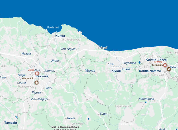 Viru-Nigula vallale lähimad tanklad on kaardilt nähtavad.