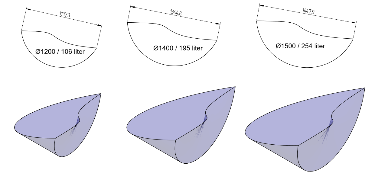 Tõusukruvi kambrite mõõdud ja mahtuvus: