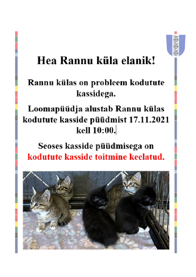 Viru-Nigula Vallavolikogu II koosseisu I istung toimub teisipäeval, 16. novembril 2021 algusega kell 17.00 Viru-Nigula Hariduse Seltsi ruumis, aadressil Kirikaia 2, Viru-Nigula alevikus. ...