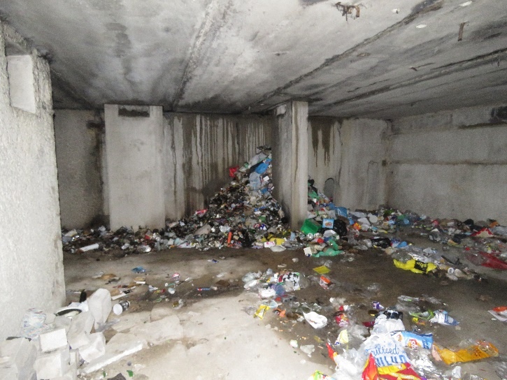 Fotod 1 ja 2. Vaade mahajäetud majale ja keldrikorrusel olevale prügihunnikule (allikas: Ida Päästekeskus)