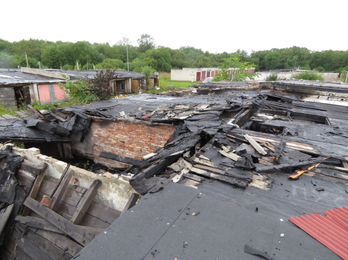 Foto 3. Mahajäetud ja kasutuses olevates garaažiboksides toimunud tulekahjujärgne olukord (allikas: Ida Päästekeskus)