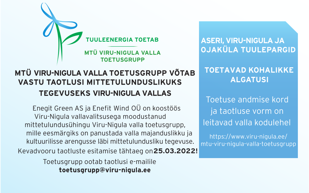 MTÜ Viru-Nigula valla Toetusgrupp võtab vastu taotlusi mittetulunduslikuks tegevuseks Viru-Nigula vallas