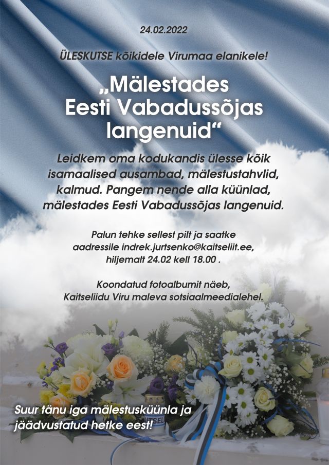 Viru malev on teinud üleskutse ''Vabaduse küünlameri''. Leidkem oma kodukandis ülesse kõik isamaalised ausambad, mälestustahvlid, kalmud, mida vähegi teate. Puhastagem...