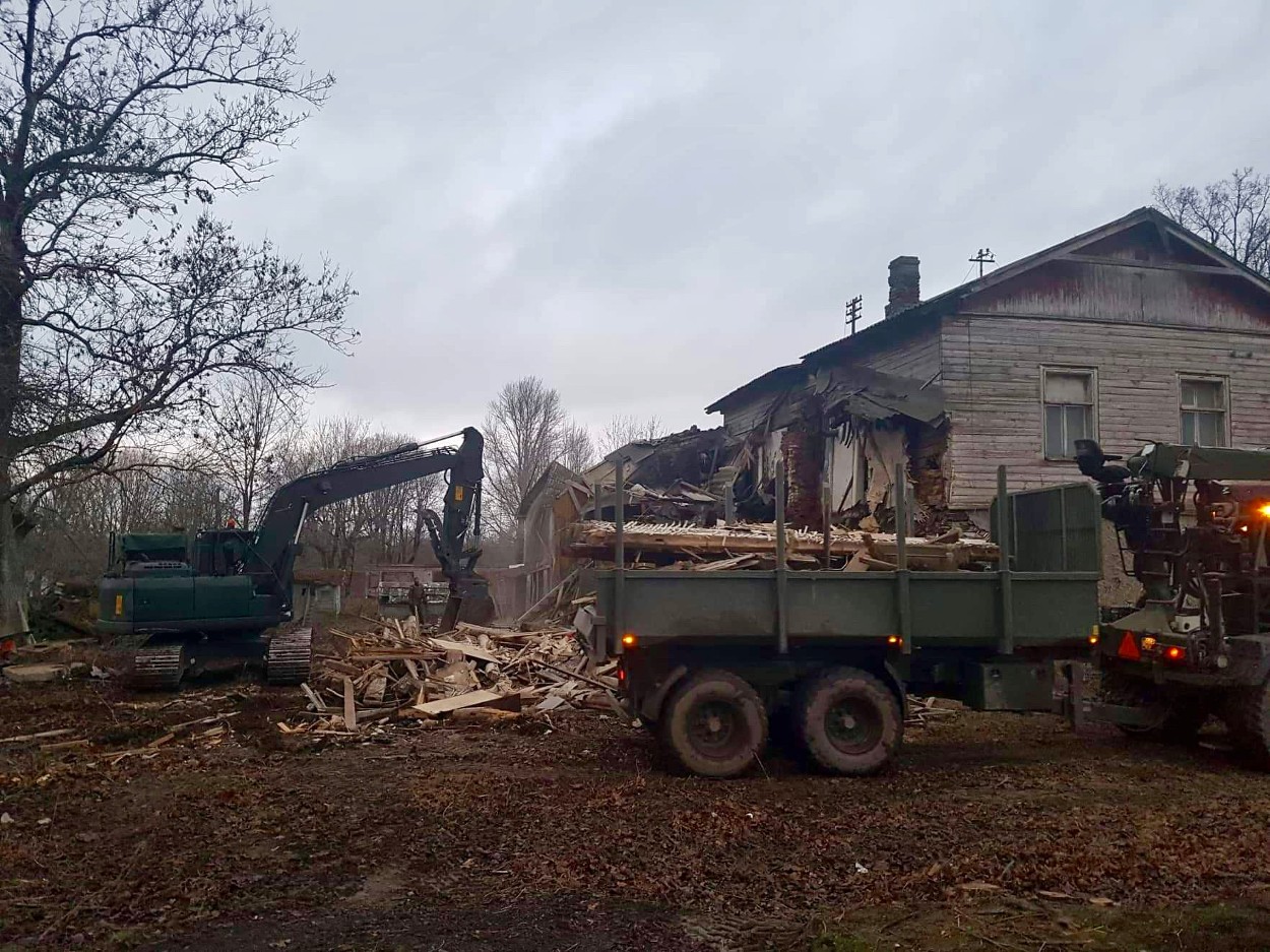 Ajateenijad lammutasid Kundas mahajäetud elamu