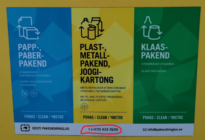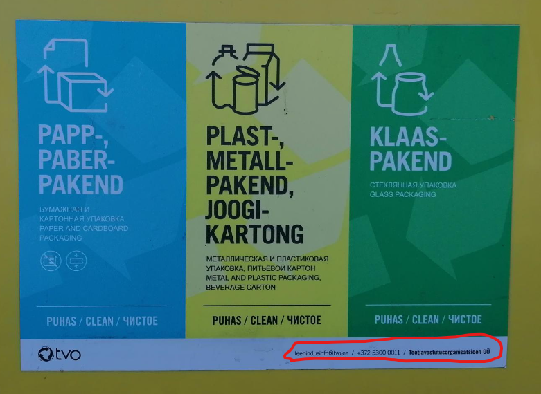 Kui avalik pakendikonteiner on täitunud, andke sellest teada pakendimahuti peal kirjas olevale mahuti haldaja kontaktnumbrile: ETO 5663 8831, TVO 5300 0011 ja EPR 633 9240.