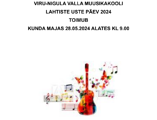 Viru-Nigula muusikakooli lahtiste uste päev 2024 toimub Kunda majas 28.05.2024 alates kell 9:00