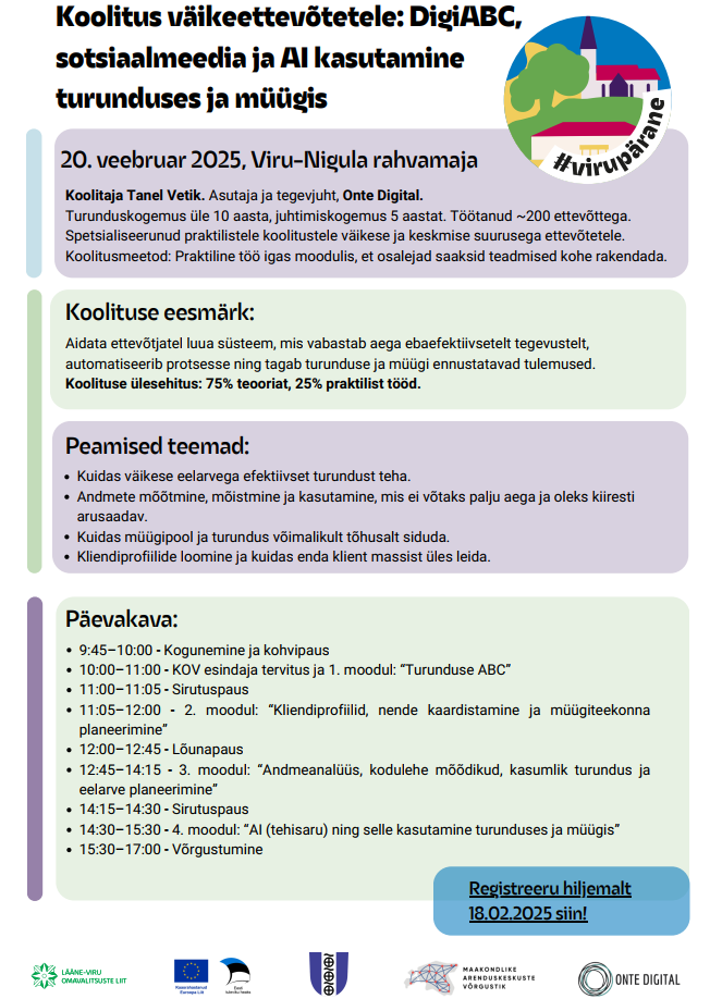 Koolitus väikeettevõtetele: DigiABC, sotsiaalmeedia ja AI kasutamine turunduses ja müügis