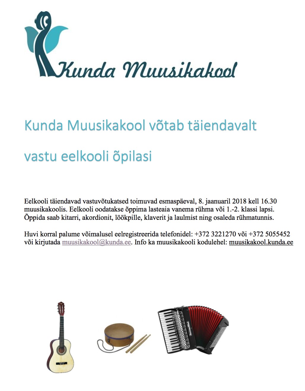 Kunda Muusikakooli eelkooli sisseastumiskatsed