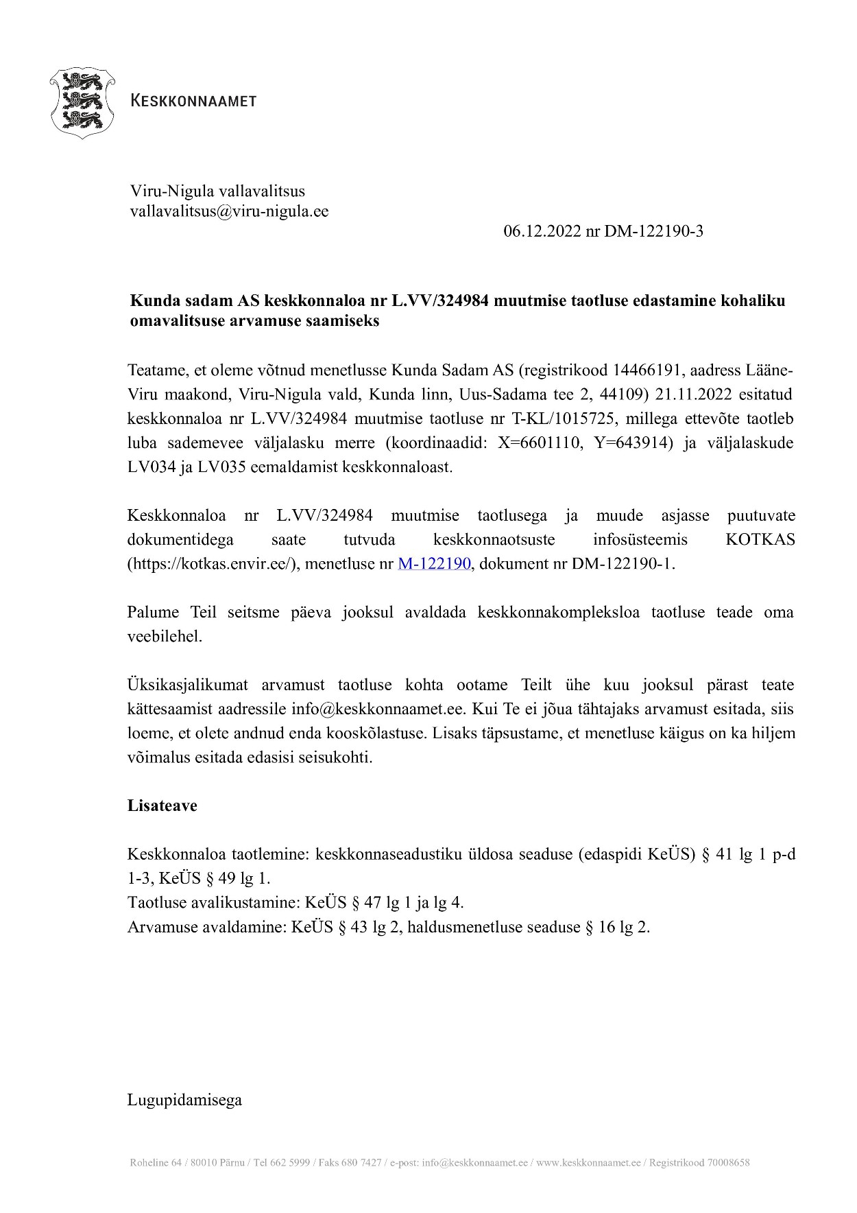 Kunda Sadam AS taotleb keskkonnaloa nr L.VV/324984 muutmist