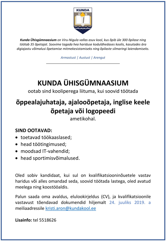 Kunda Ühisgümnaasium ootab sind kooliperega liituma