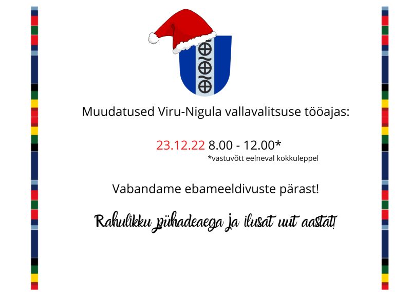 Pühade-eelne tööajamuudatus Viru-Nigula vallavalitsuses