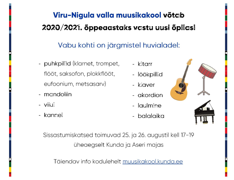 Muusikakooli vastuvõtt 2020/2021. õppeaastaks