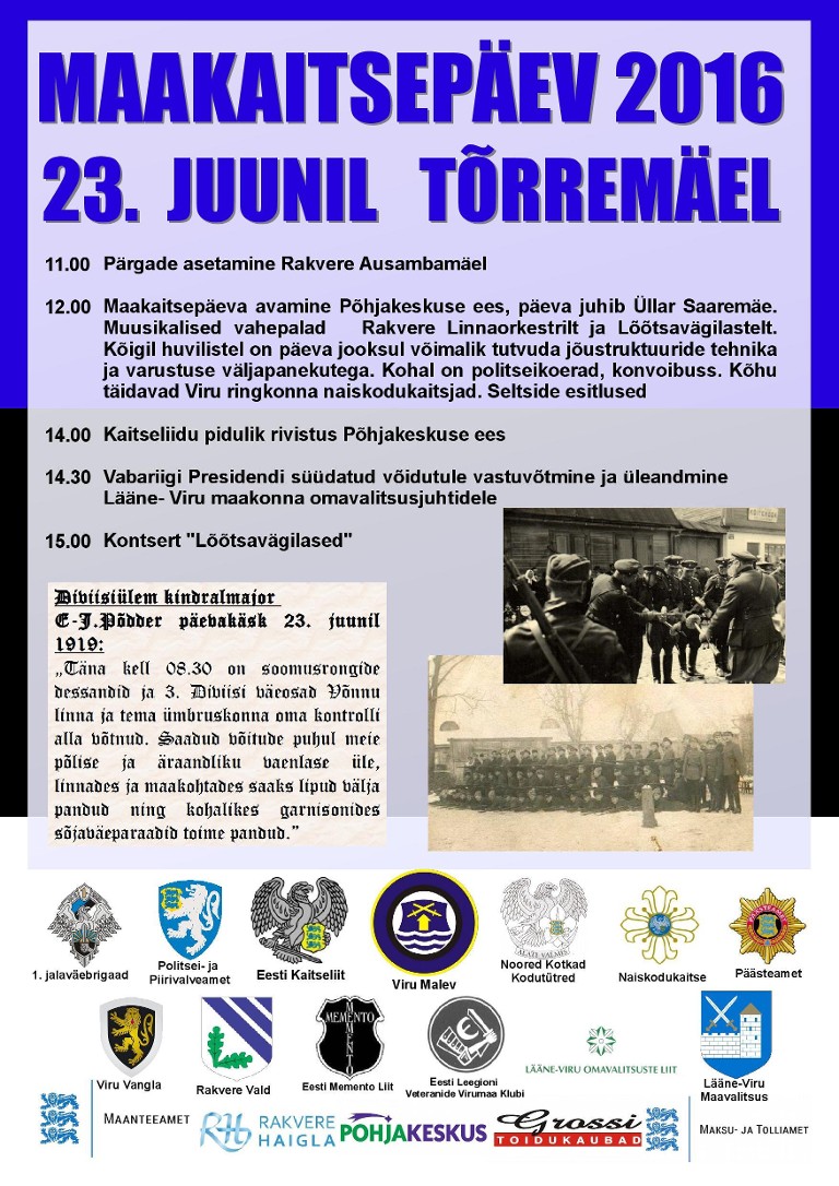 Alates kell 12 saab Põhjakeskuse ees hoo sisse maakaitsepäev, kus oma tööd, tehnikat ja varustust on tutvustamas maakonna jõustruktuurid. Muusikalised vahepalad teevad Rakvere Linnaorkester ja Lõõtsavägilased. Loomulikult saab maitsta ka naiskodukaitsjate valmistatud sõdurisuppi. Päeva juhib Üllar Saaremäe.