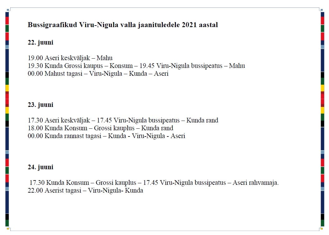 Laupäeval, 18. septembril toimub Viru Ralli 2021. Pooled rallikatsed läbitakse Viru-Nigula valla teedel, ralli saab alguse Kunda lähistelt ning hommikuses osas läbitakse kaks korda mõlemat kiiruskatset. Ohutuse tagamiseks suletakse katsed vastavalt liiklusskeemile ajavahemikul 9.30-13.30. Kohalikke elanikke teavitatakse eelnevalt teede sulgemisest.