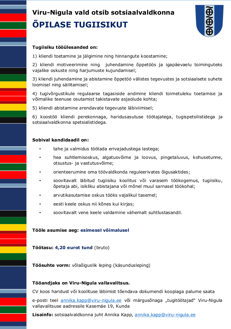 Viru-Nigulavald otsib sotsiaalvaldkonna ÕPILASE TUGIISIKUT