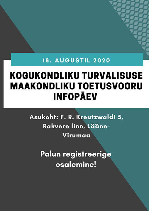 Kogukondliku turvalisuse maakondliku toetusvooru infopäev toimub 18. augustil 2020 Lääne-Virumaal, Rakveres aadressil F. R. Kreutzwaldi 5. Toimumise aeg: 14.30-16.00 ...