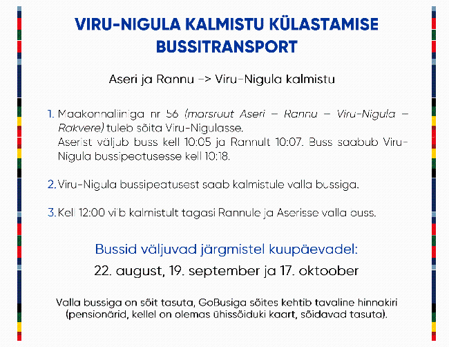 Alates 10.08.2020 muutub Ida-Viru maakonna bussiliini nr 99 ASERI – KIVIÕLI ja nr 99L ASERI – LÜGANUSE sõiduplaanid, enamus väljumistel on Purtse kindluse peatuse läbimine ja Adru peatuse...