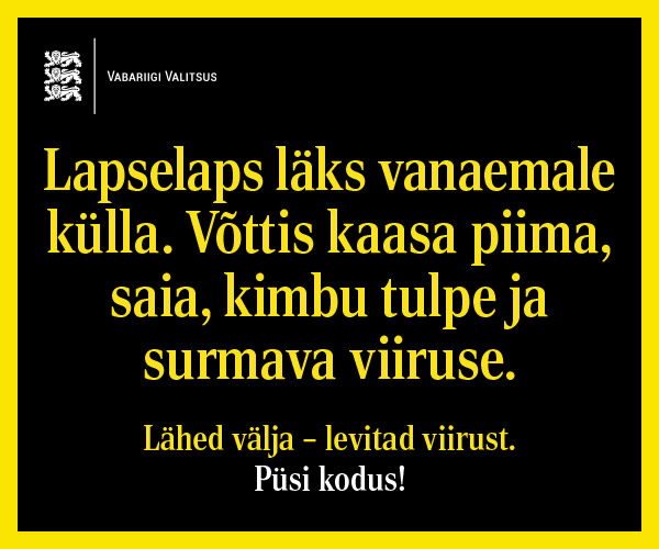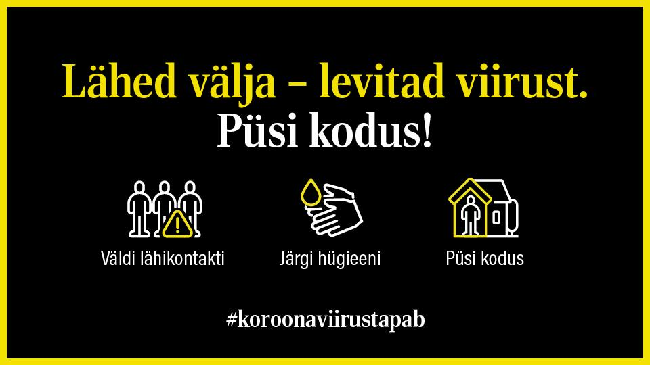 Riik käivitas koroonaviiruse edasise leviku takistamiseks vastutustundlikkusele suunava sotsiaalkampaania „Lähed välja – levitad viirust. Püsi kodus!", millega kutsutakse Eesti...