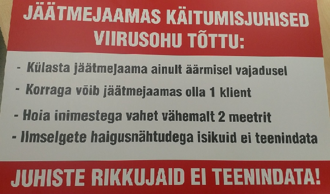 Müügi- ja teenindussaalides tuleb jälgida inimeste arvu ja need tuleb varustada desovahenditega