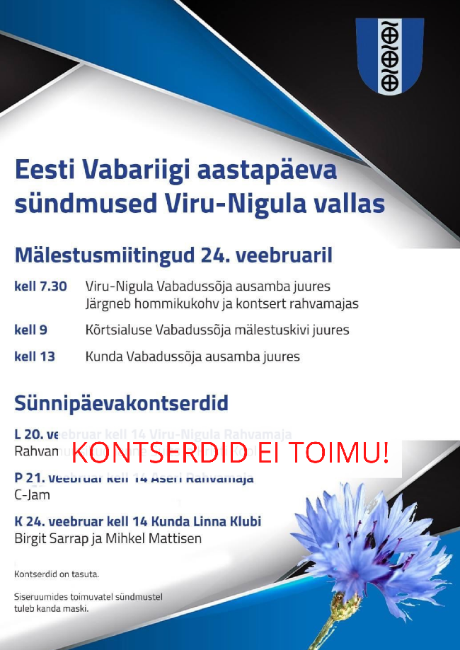Seoses koroonaviiruse leviku hoogustumisega maakonnas ja vallas otsustas Viru-Nigula vallavalitsus jätta ära algselt planeeritud Vabariigi aastapäevale pühendatud kontserdid Viru-Nigulas, Aseris...
